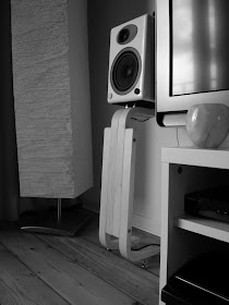 Description: After seeing this other Frosta Speaker Stand Hack I wanted to try it myself but wasn't quite satisfied with the results. So I started to try out some other combinations of the stools legs and came up with this as a type of floating stands.